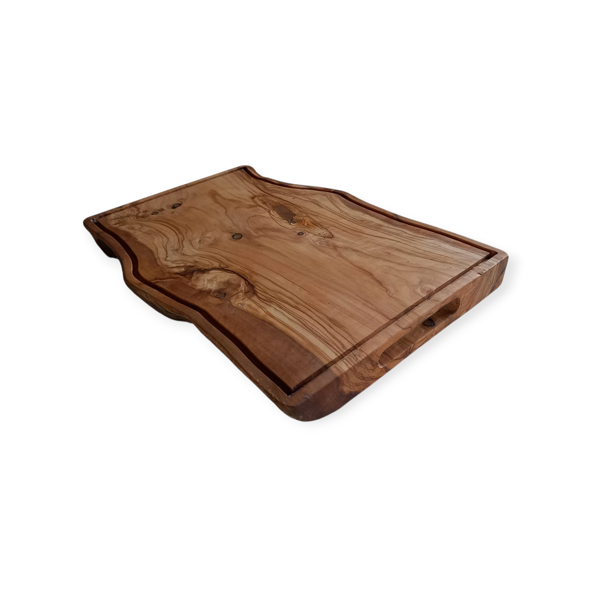 Tabla rústica y artesanal de madera de Olivo, medidas: 44x30x4 cm.