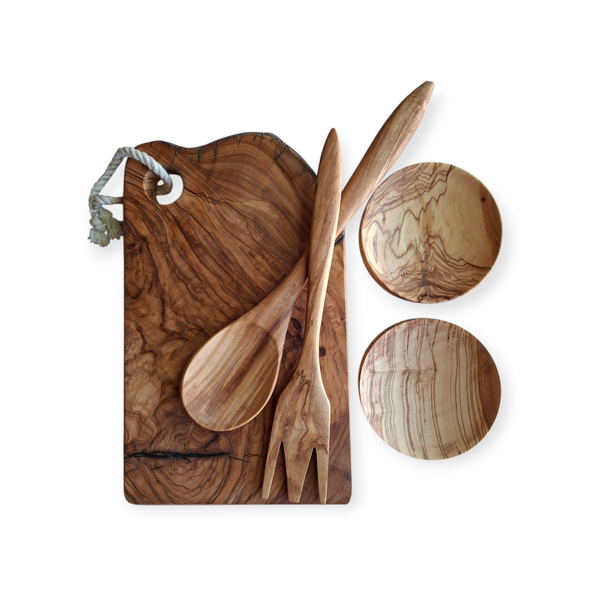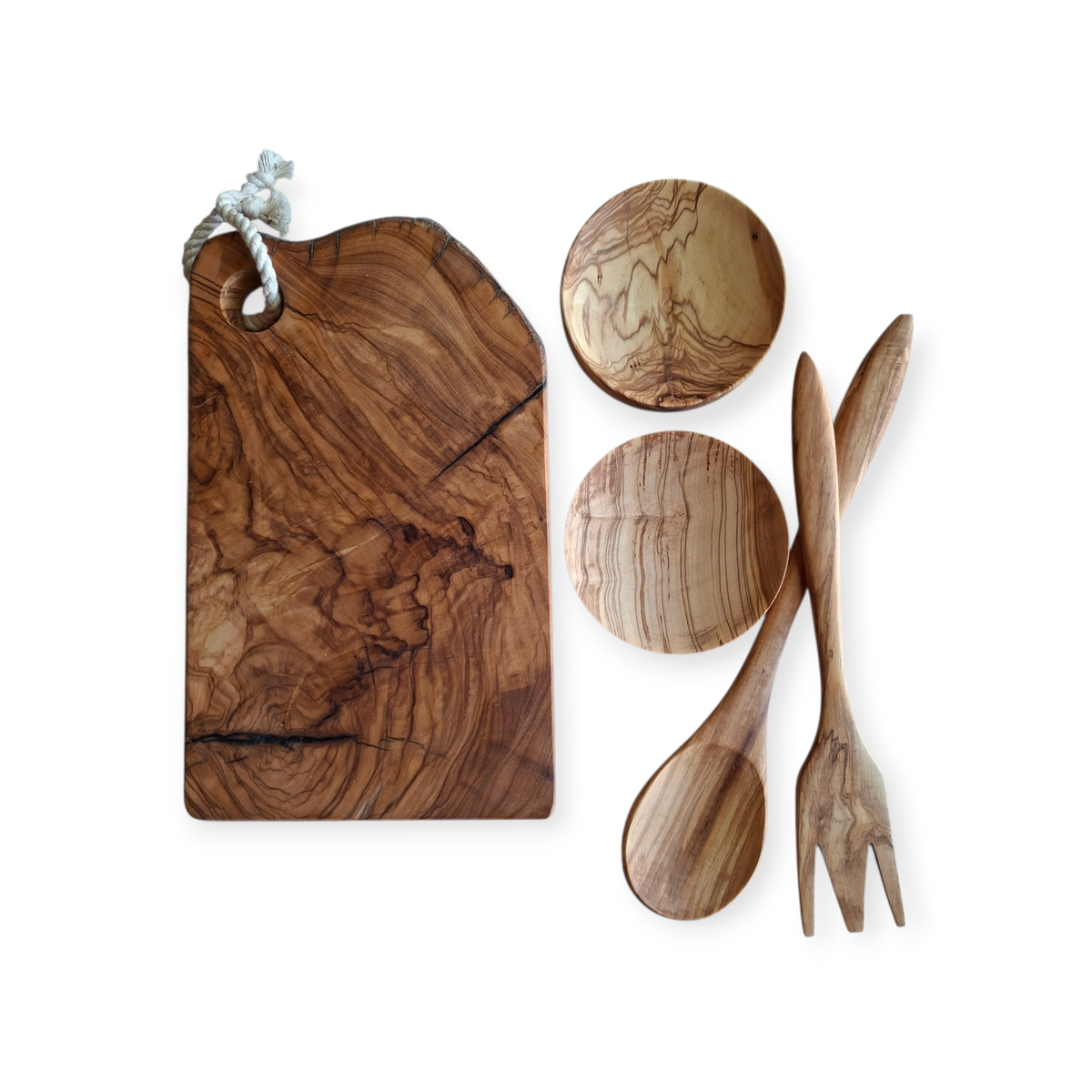 Los productos conservan los detalles y características de la madera de Olivo en cuánto a vetas, grietas y colores que le son propio.