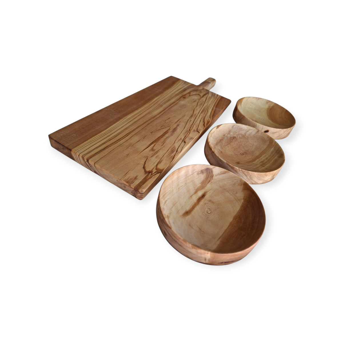 Los productos conservan los detalles y características de la madera de Olivo en cuánto a vetas, grietas y colores que le son propio.