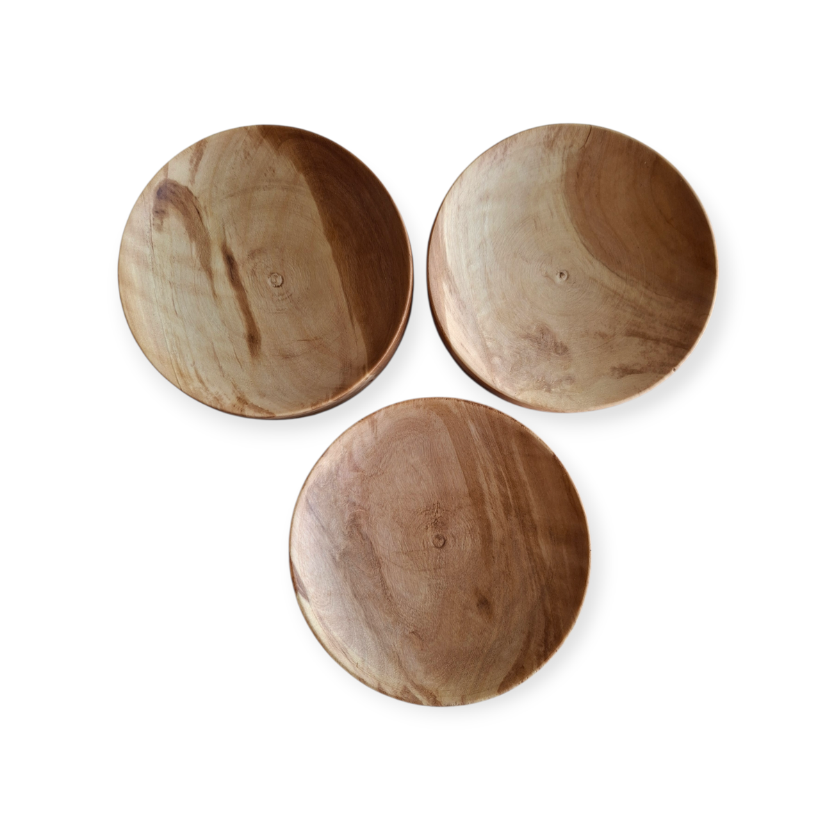 3 Mini platitos de Olivo, 12 cm de diámetro x 2 cm de altura.
