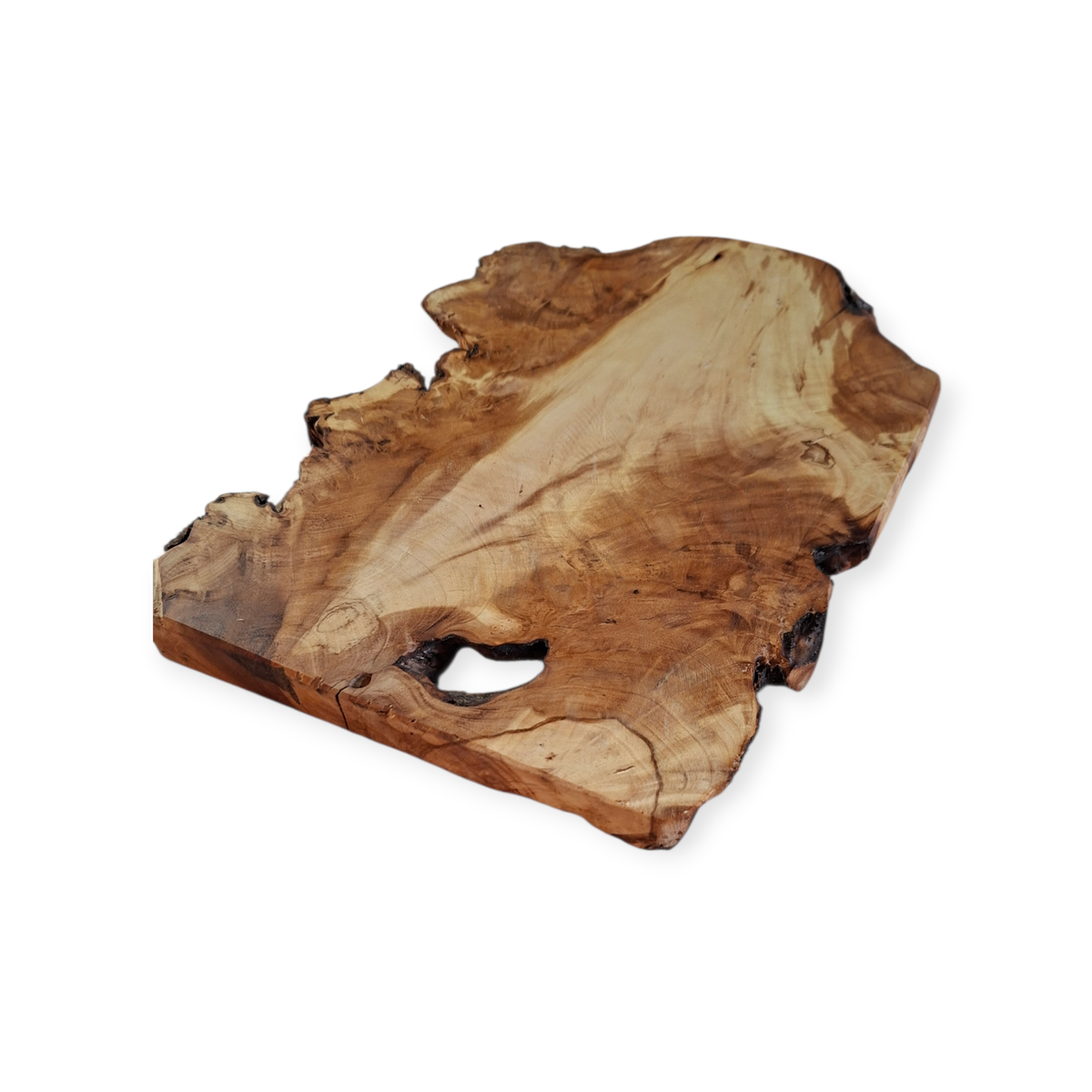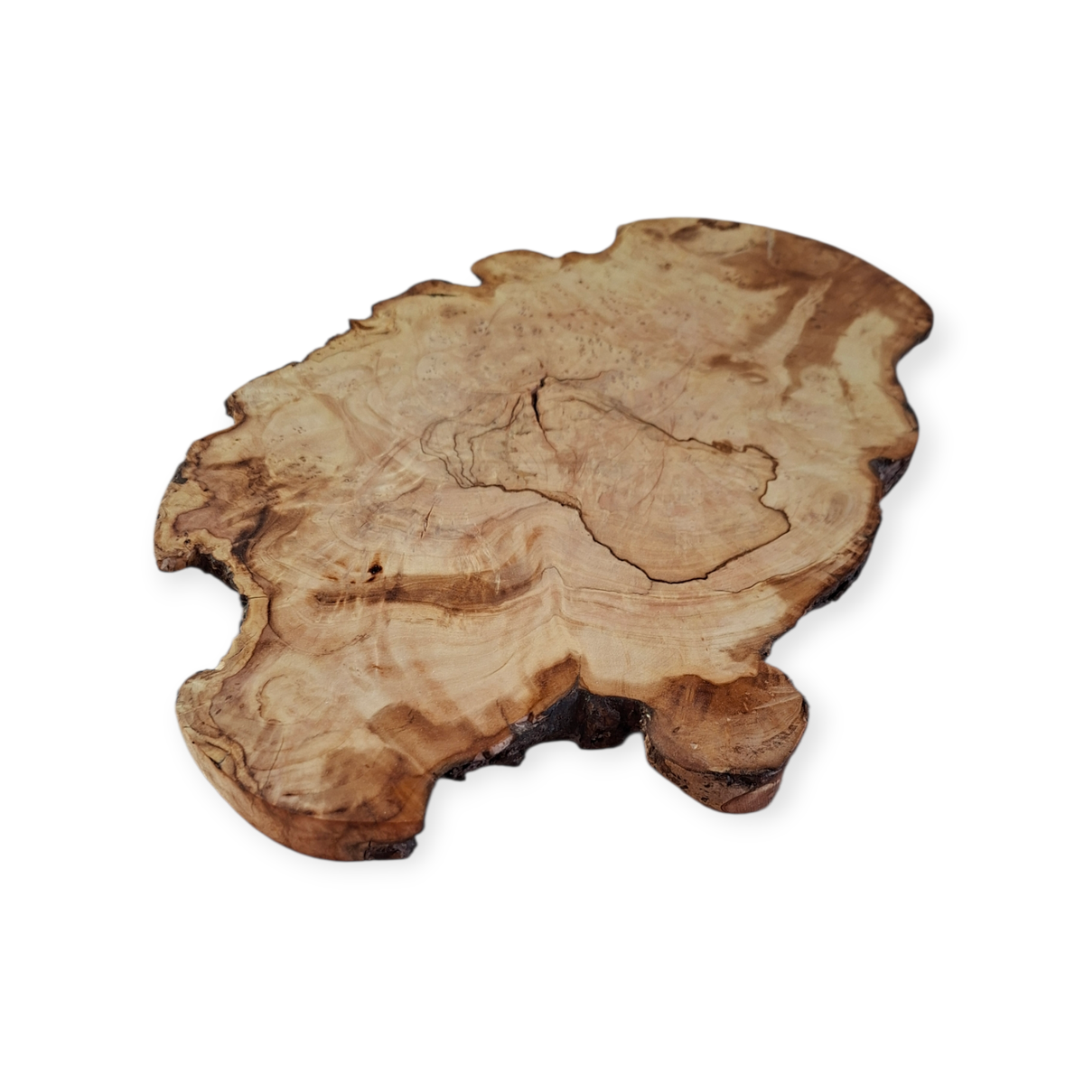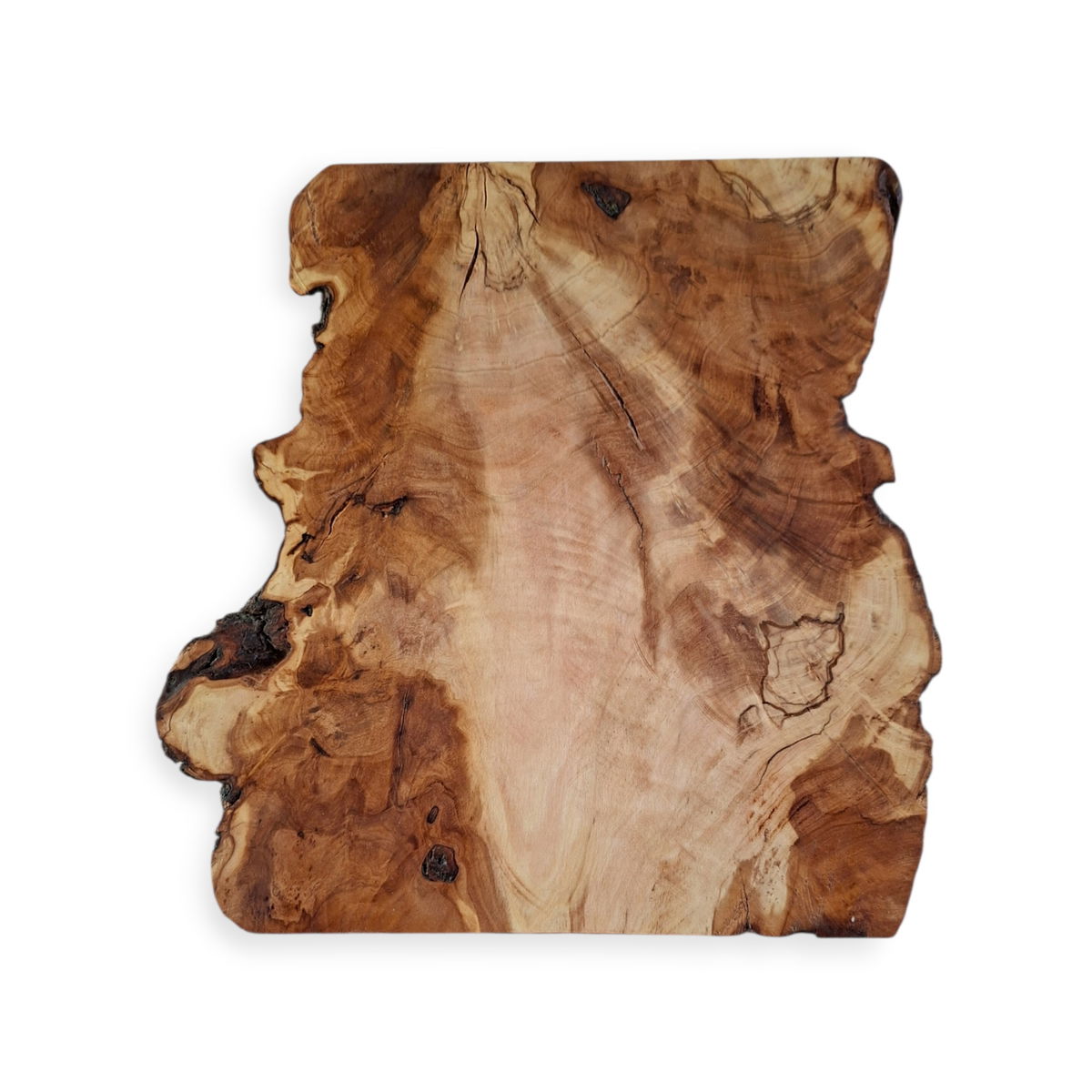 Tabla rústica con bordes irregulares que conserva la corteza de la raíz de Olivo, medidas: