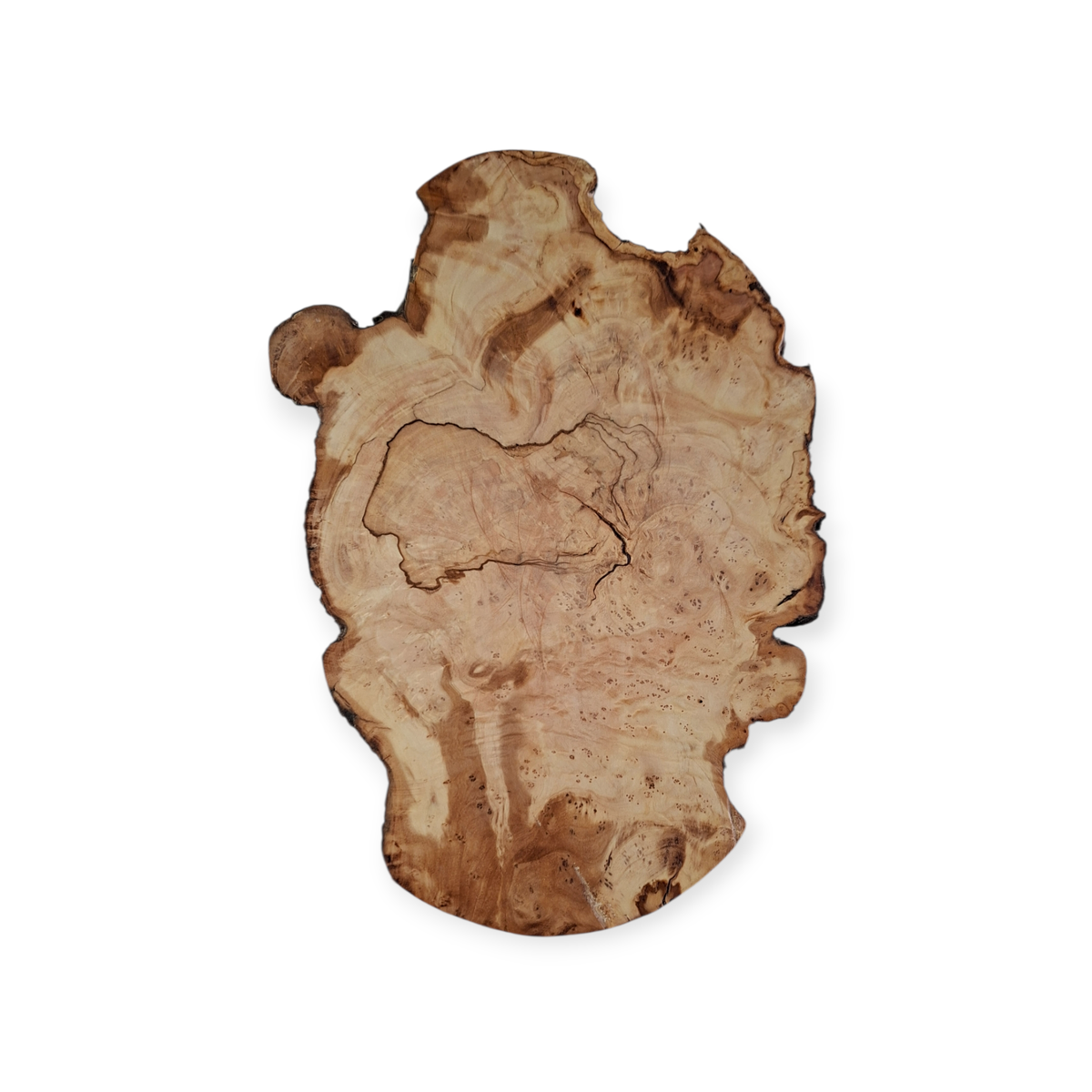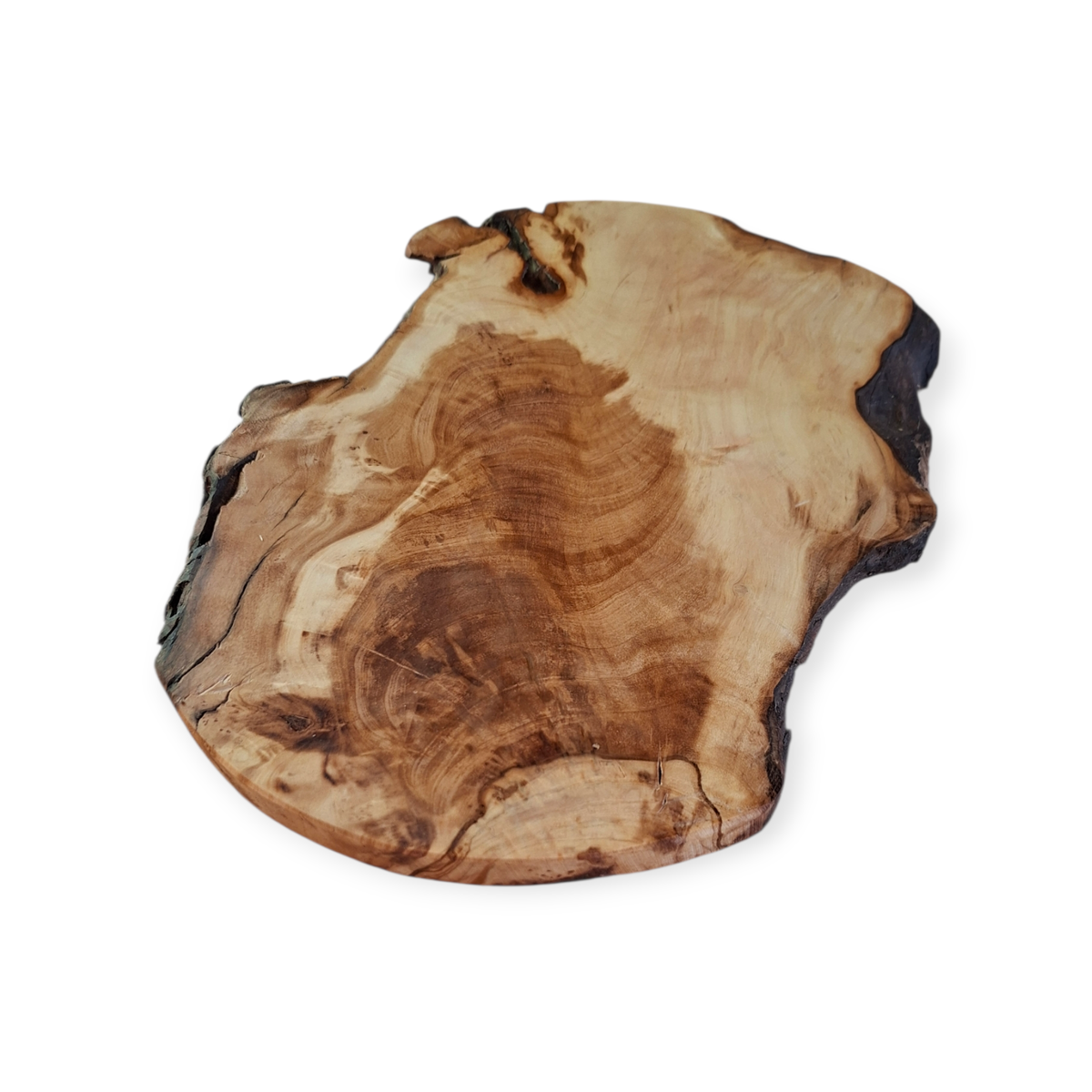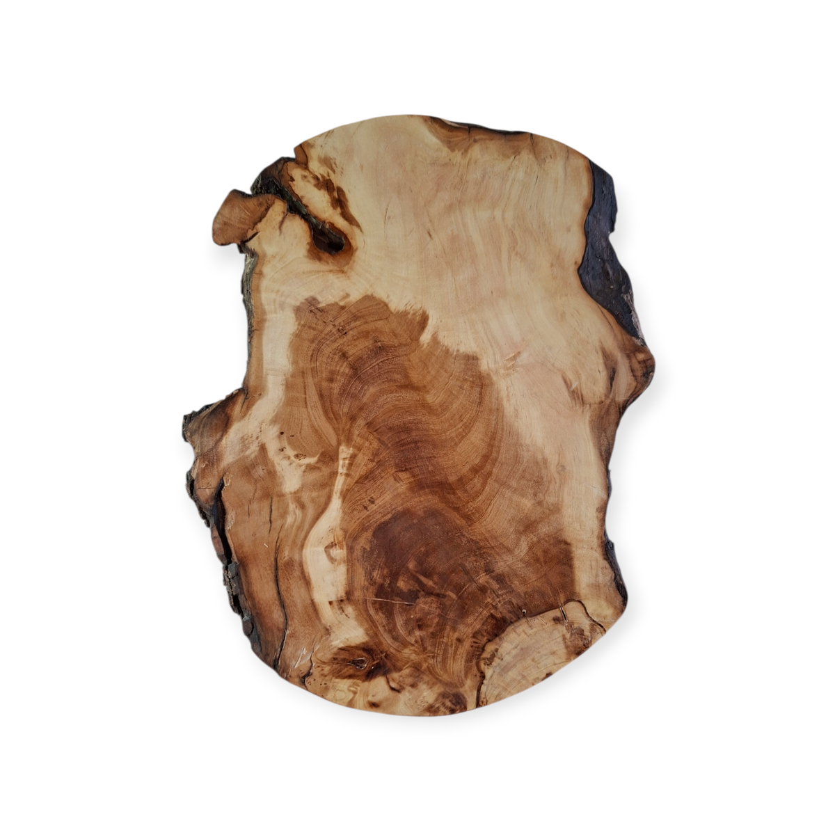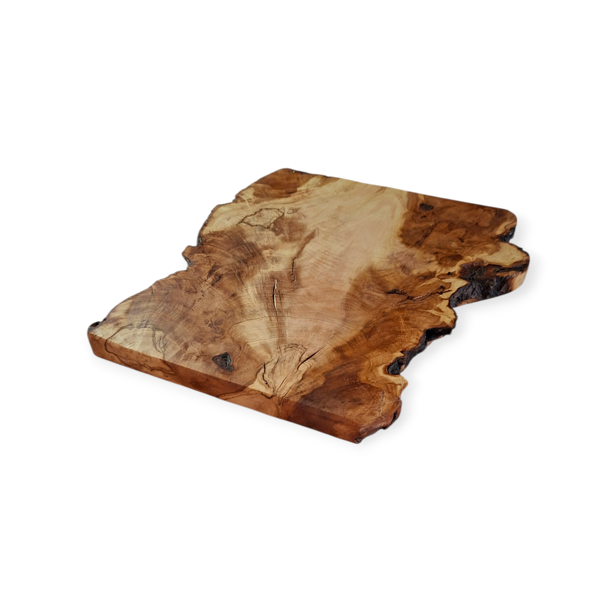 Tabla rústica con bordes irregulares que conserva la corteza de la raíz de Olivo, medidas: