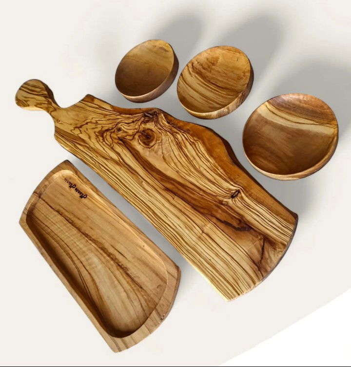 Los productos conservan los detalles y características de la madera de Olivo en cuánto a vetas, grietas y colores que le son propio.