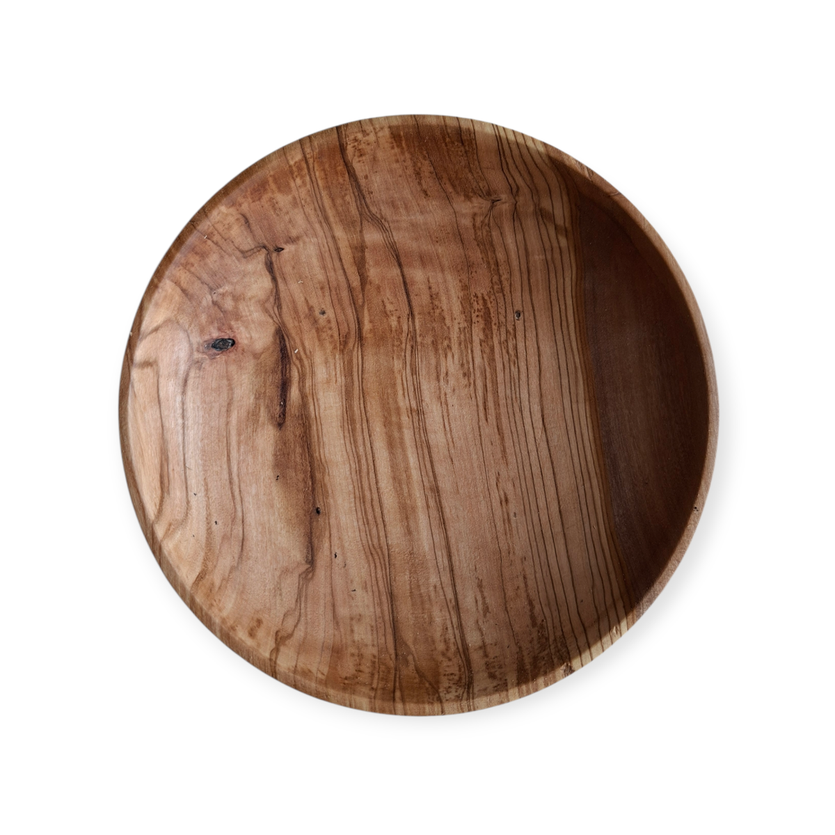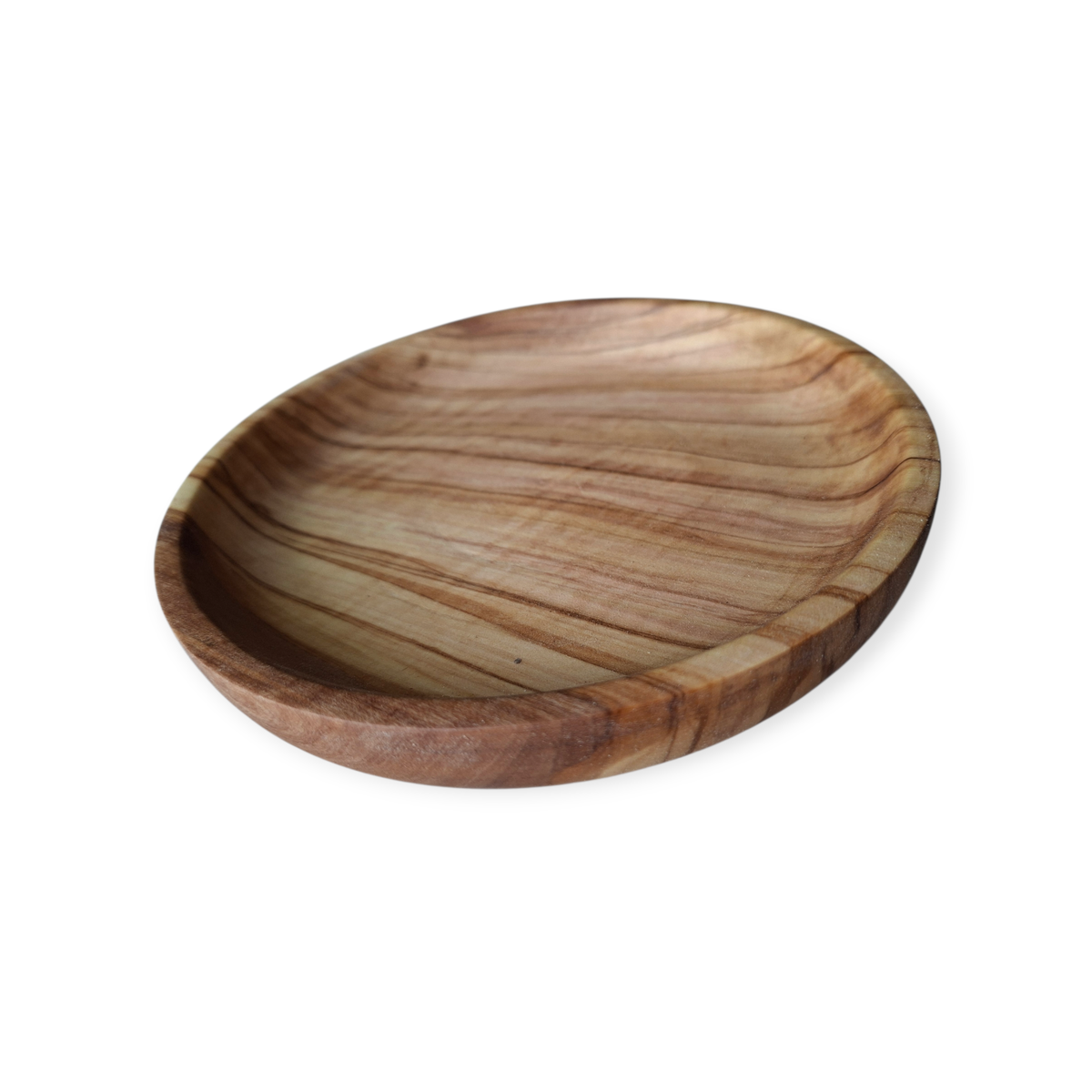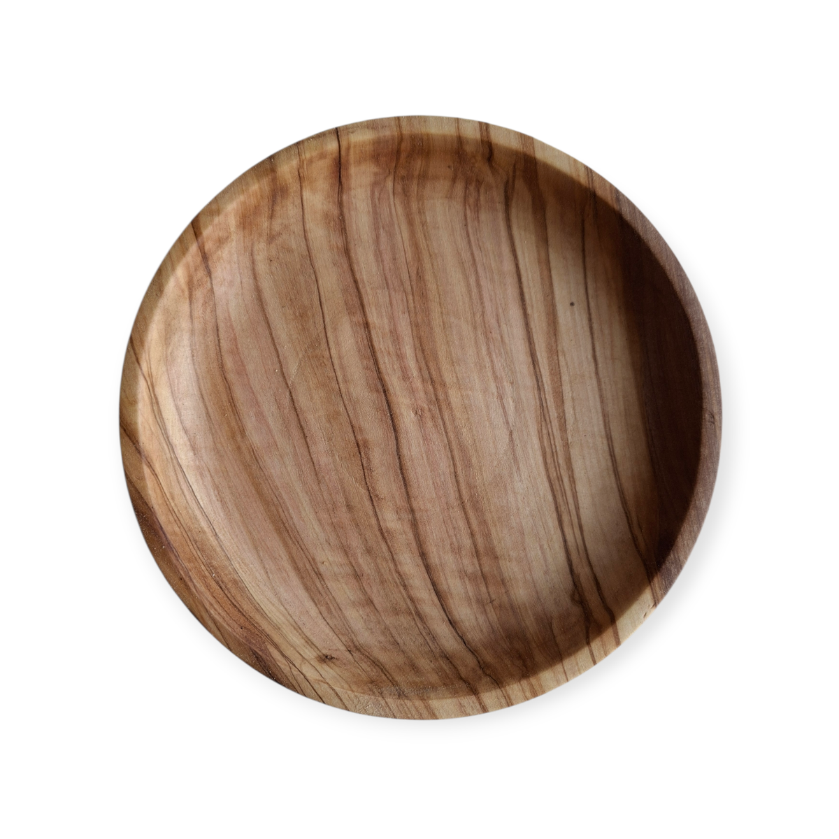 Cuenco torneado de madera de Olivo de 20 cm de diámetro x 3,5 cm de altura.
