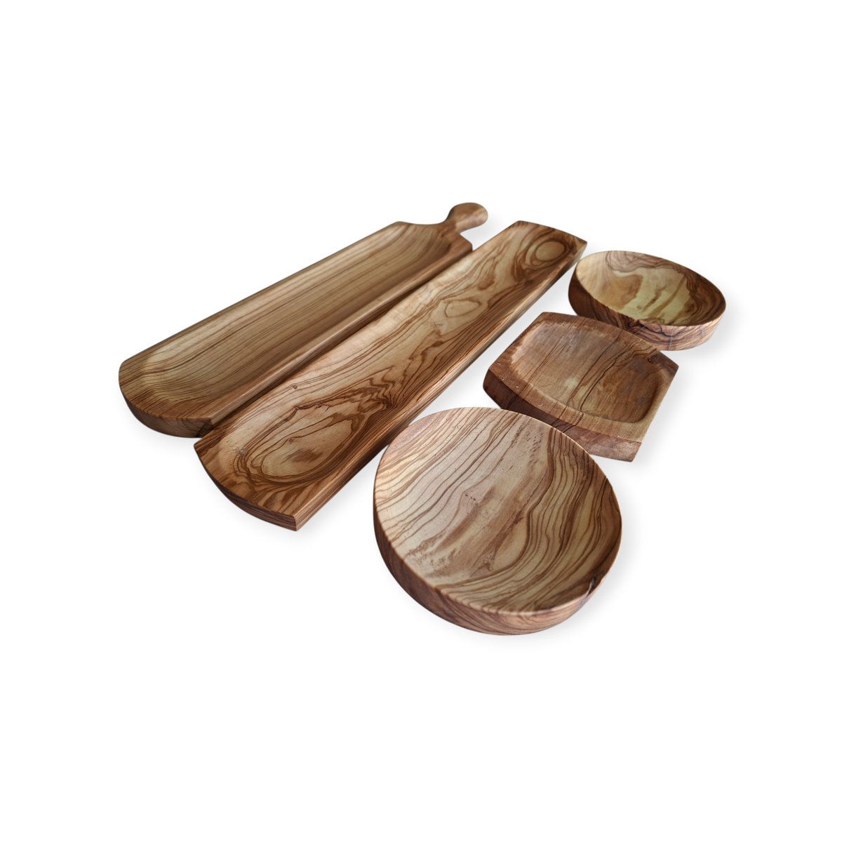 Los productos conservan los detalles y características de la madera de Olivo en cuánto a vetas, grietas y colores que le son propio.